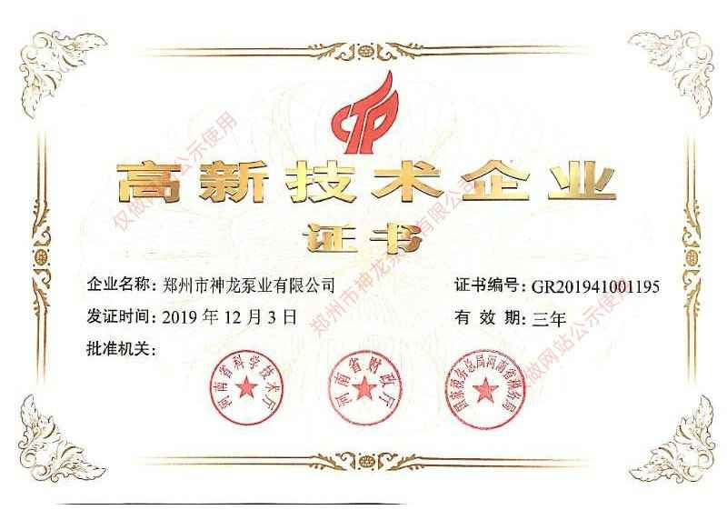高新技术企业证书